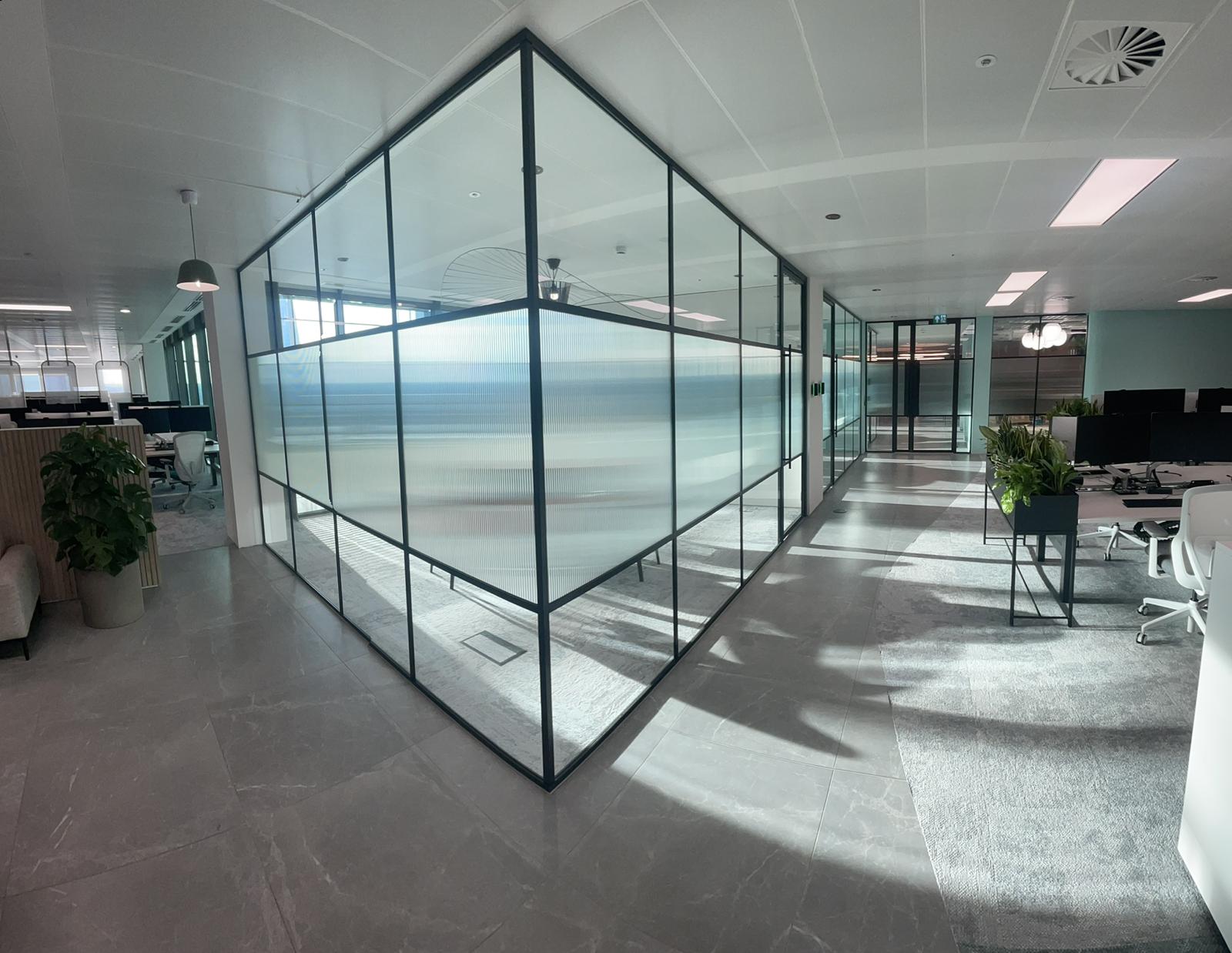 Glass partitioning allows you to create new spaces whilst keeping an open plan feel. Light can flood through making offices feel more spacious, modern & stream lined.